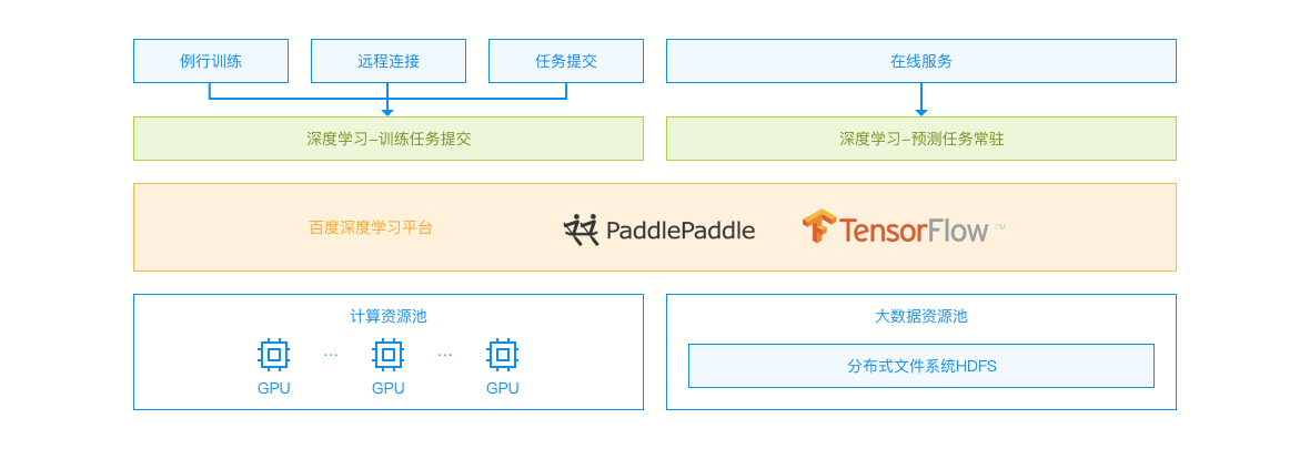 基于百度自行研发的分布式任务调度系统及GPU资源监控系统,帮助用户轻松实现集群资源的多租户分配、管理和监控。